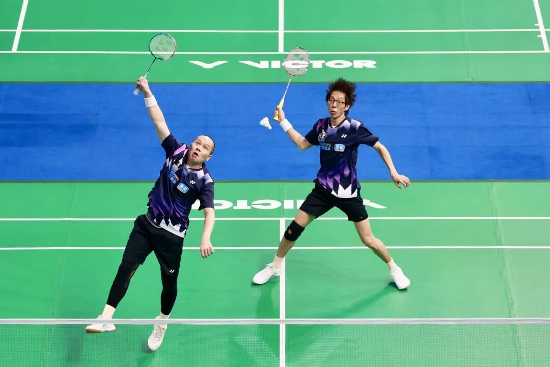 男双D组(55岁-64岁)的王明基/李钧照与男双B组(35岁-44岁)颜静熙/邢福星挺进今天上午举行的决赛。他们为广东队斩获一金一银。男双D组是上午六个双打决赛中最早结束的,因此产生本届全运会群众羽毛球首金。李钧照今年61岁,王明基今年55岁,分别来自广州海珠区和番禺区,两人打羽毛球的时间加起来差不多一个世纪,更是广州市业余羽毛球品牌赛事“市长杯”的常客。他们此前各参加过一届全运会群众比赛,在本届是第一次搭档男双。